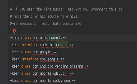 proguard-rules 작성 시 <Unresolved class name Error> lint