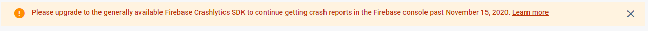 2020년 11월 15일 전까지 Firebase Crashlytice SDK를 업데이트 하라고 하는군요.