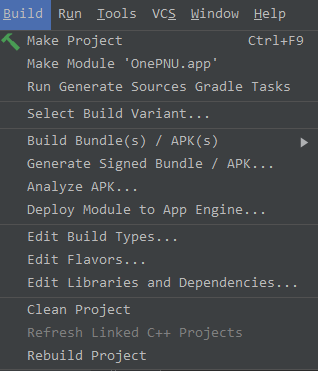 안드로이드 프로젝트의 상단메뉴중 Build의 메뉴에서
