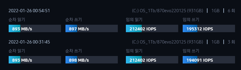 표기스펙과 차이가 있을 수는 있다고 해도, 이정도 순차 읽기/쓰기 속도면 뭔가 문제가 있는게 확실했습니다.